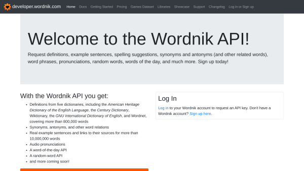 DictionariesAn API for the English Language. Find definitions, related words, and more.